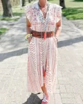 Be the first to review “Printed V Neck Ruffle Hem Sleeveless Tassel Design Casual Loose Midi Dress”